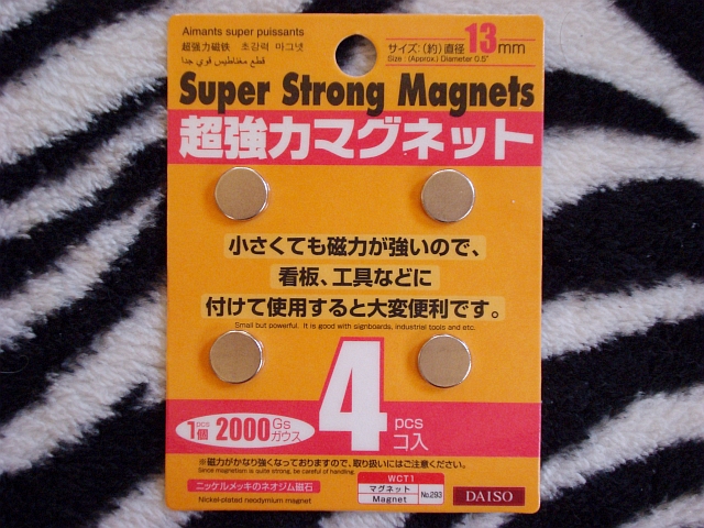 最近ダイソーによく行くようになって、偶然見つけた磁石。