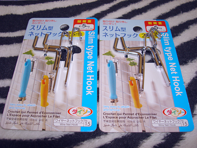 両面テープで貼るヤツとか、フック類はダイソーで調達。