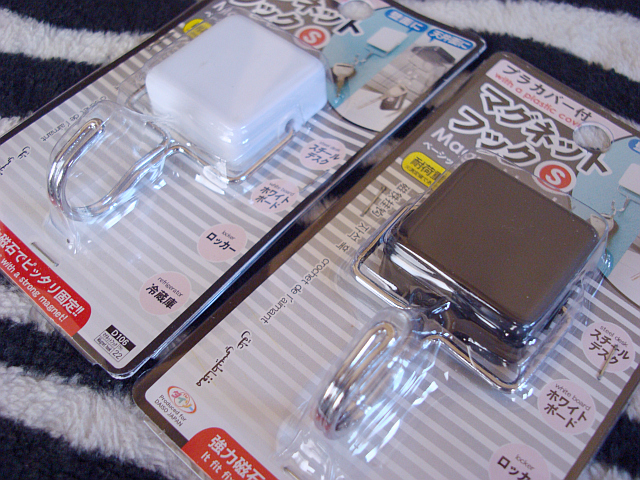 いっぱいあったからそこのダイソーならいつでも買えるつもりでいたら、次に行ったときにはもうなくなってた。ほかのダイソーでも見かける黒いマグネットで、1個600ガウスとかいうヤツになってた。