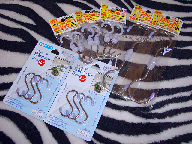 S型ハンガー・くるくるフックもある。