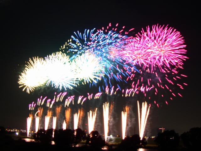 手賀沼の花火でよく見る、リング系のとかプシュプシュッて飛び散るのとかはなかったみたい。