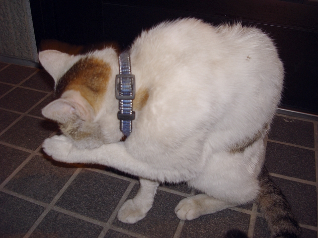 またたびをなめると、しばらく静かにすわってて、もうもらえないのを確認すると、そのあと巡回にでかける。