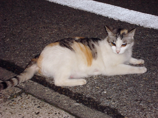 子猫で、まだ元気だから、大雨の日でミャーがこなくてもびしょぬれになって遊びにくる。