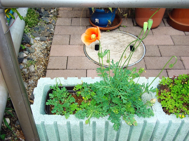 ポピーに似てるケド、葉っぱの形が違うから調べてみたら、ナガミヒナゲシってのらしい。