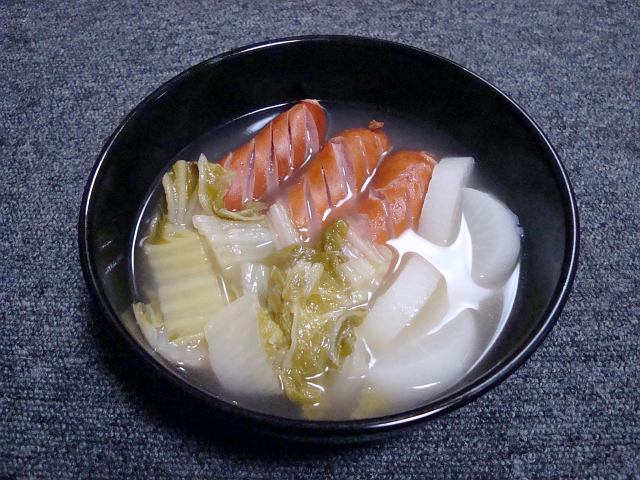 そのときによって具は違うケド、基本はソーセージと白菜。