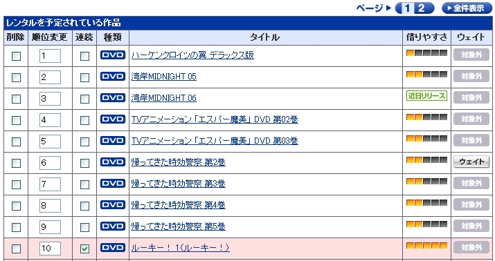 リストももらったから、DVD届いたら画質やなんかを確認したらまた注文するかも
