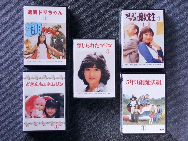 5作品譲ってもらうことになって、「禁じられたマリコ」のほかに、以前からCSでの再放送を待ってた「透明ドリちゃん」(UHF局で遠い過去に見たことしかない)。あと、「5年3組魔法組」「好き好き魔女先生」。なんとなく「どきんちょ!ネムリン」も。