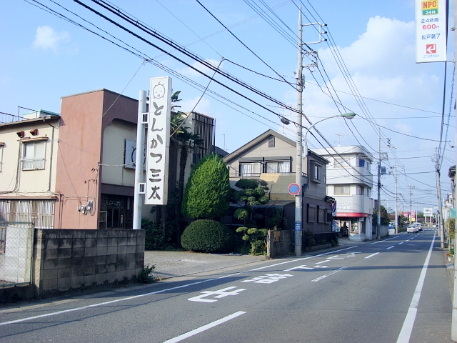 土手から徒歩5分ぐらいのところにあるとんかつ屋さん「とんかつ三太」。地元ではけっこう有名。