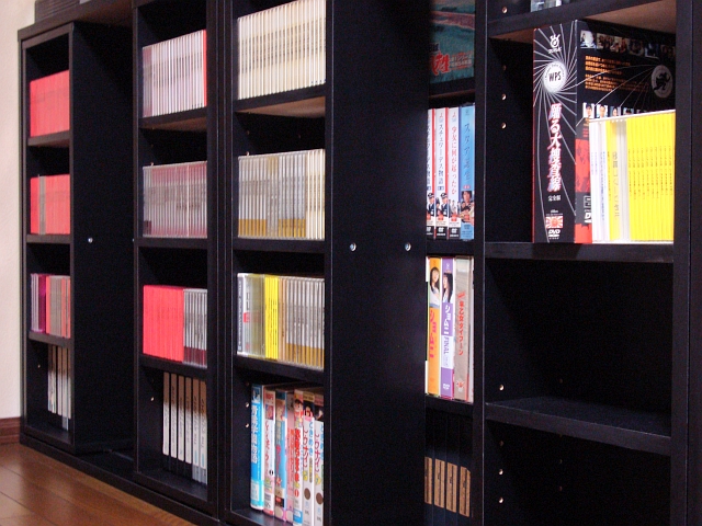 前のはコミック・ビデオ用だったから、奥行きがたりなくてDVDやDVD-BOXを入れるとスライド棚がスライドできなかった。